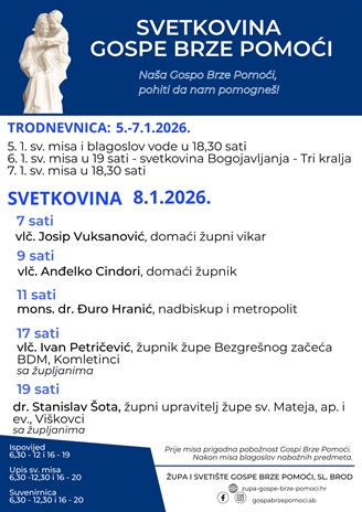 SVETKOVINA GOSPE BRZE POMOĆI, 8. siječnja 2026.